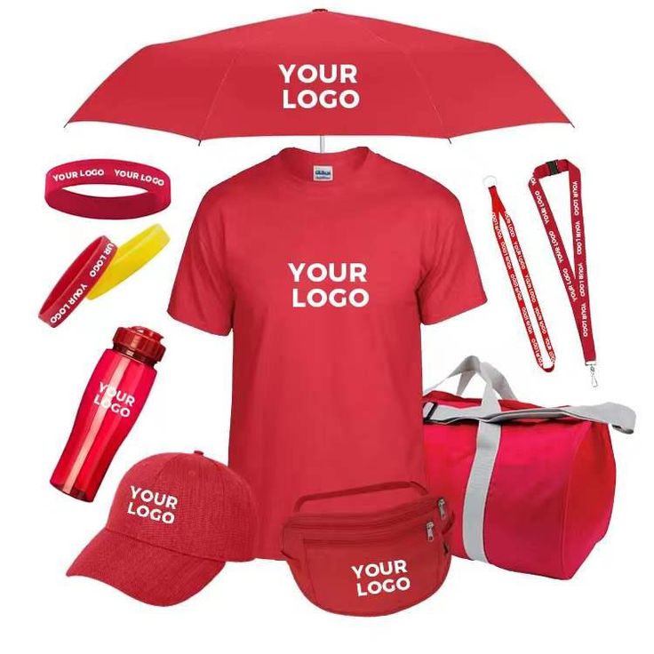 Boost your brand visibility with our customizable promotional set, featuring high-quality items like umbrellas, tote bags, bottles, apparel, and accessories—all showcasing your logo for maximum impact.